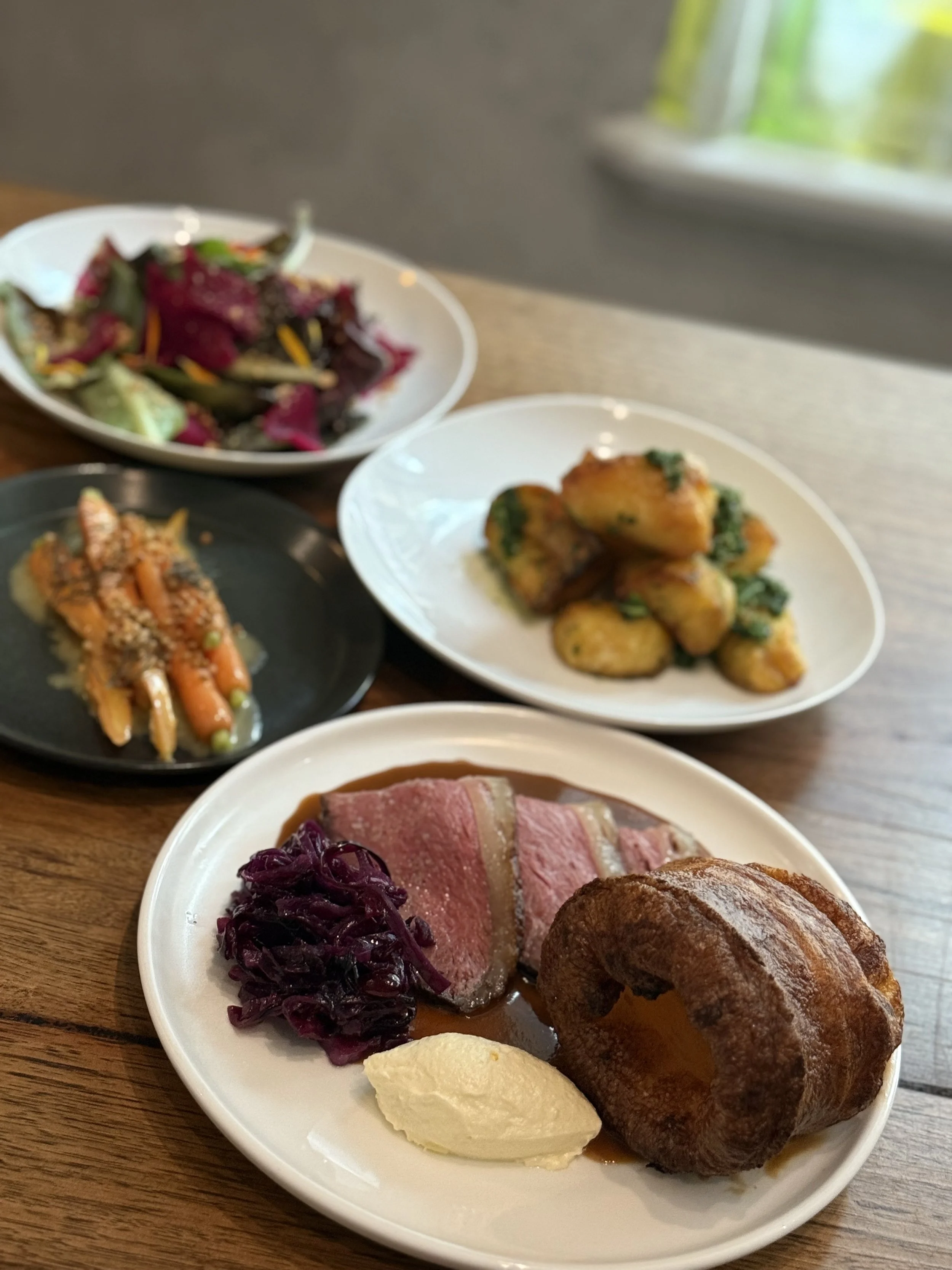 Always a choice of 2-3 meats, and a vegetarian option, Yorkshire puddings and desserts - you know the drill. Find our sample menu below.